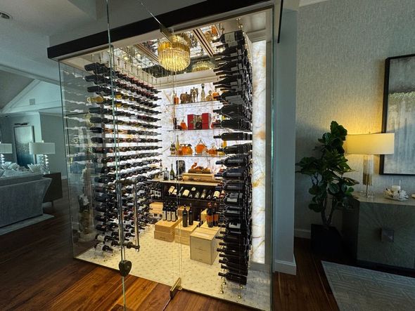 Backlit Cristallo slabs, Cable System, Floor-to-Ceiling Racking, Designed for discerning clients.