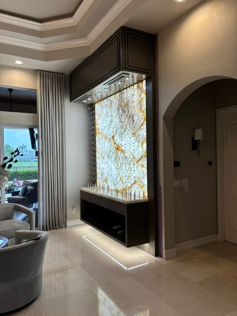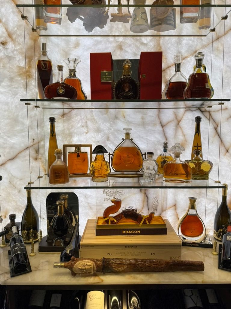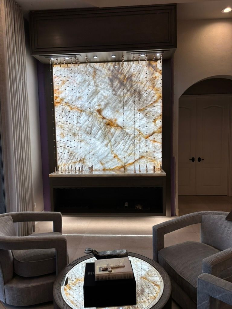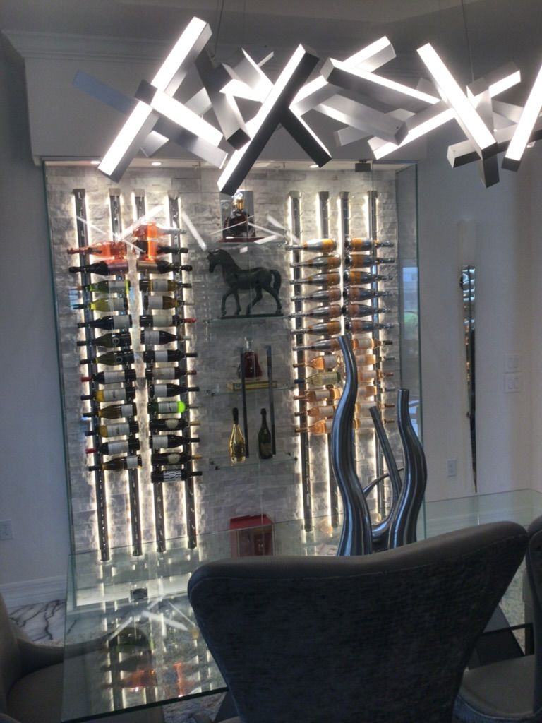 Backlit Cristallo slabs, Cable System, Floor-to-Ceiling Racking, Designed for discerning clients.