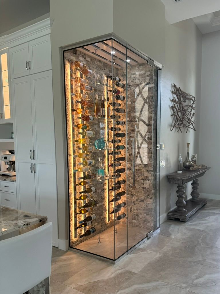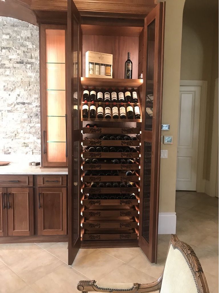 Coastal Custom Wine Rooms designs and builds wine rooms, cellars, wine walls, and wine cabinets for luxury homes throughout Florida’s west coast. Our Design Center is located at 6260 Shirley Street Suite 605, Naples, Florida 34109. Business hours are Monday through Friday, 8 to 4 PM.
